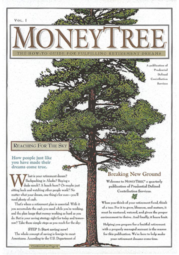 | Prudential Defined Contribution Services (now Prudential Retirement) needed a newsletter that would explain in simple, friendly terms, how various retirement plans, such as 401(k)s would work to help employees save for retirement.